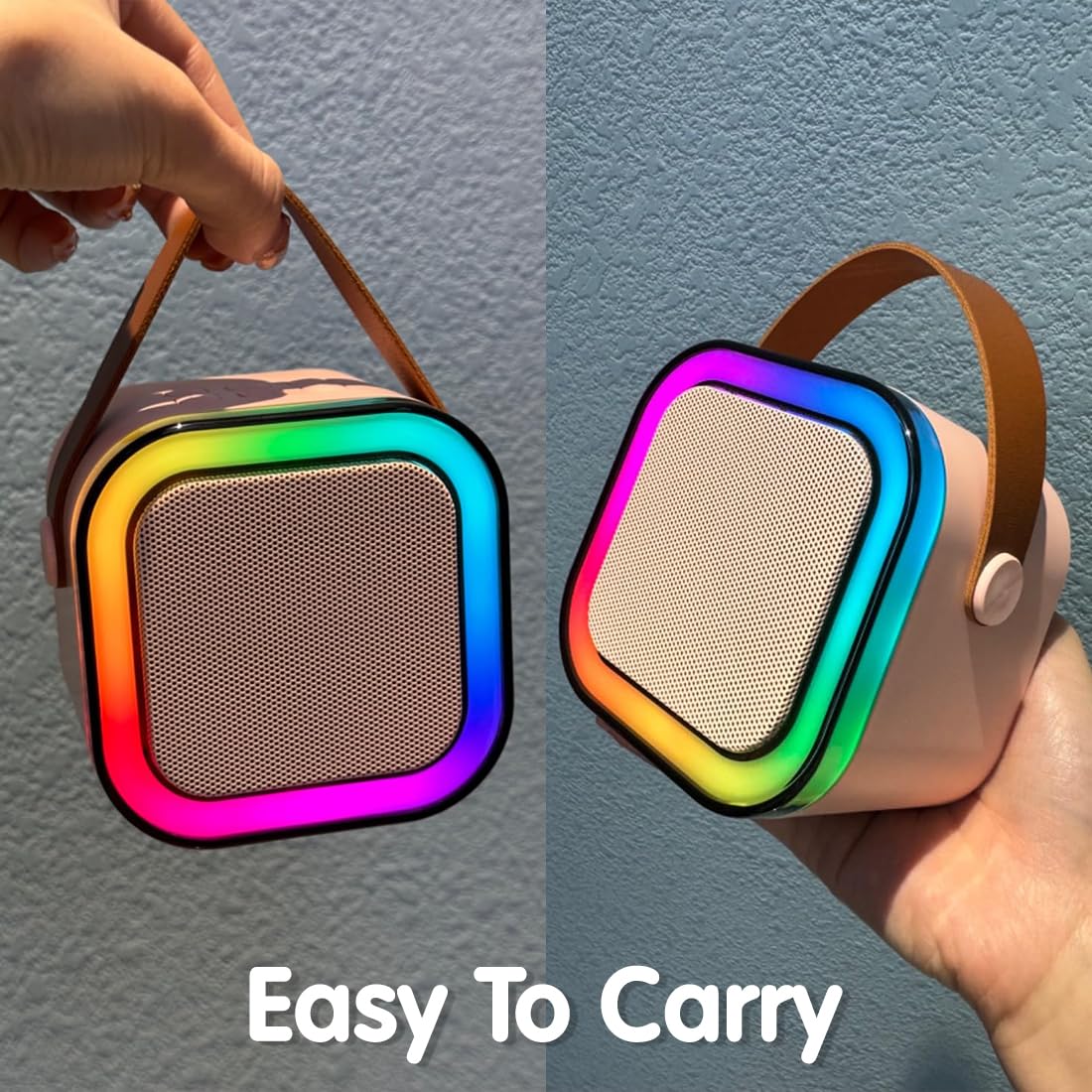 - MINI KARAOKE MACHINE: Experience powerful and crystal-clear audio with our mini karaoke machine. Equipped with dual speakers, it delivers deep bass and crisp treble, creating a captivating three-dimensional effect. Plus, the built-in LED light enhances the singing atmosphere.